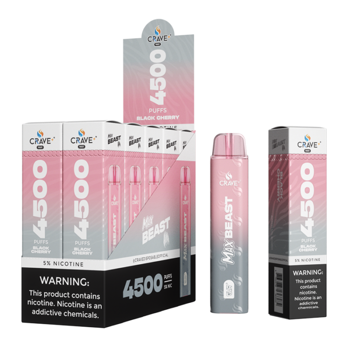 CRAVE MAX BEAST DISPOSABLE 4500 PUFFS BLACK CHERRY 5% - BOX OF 10