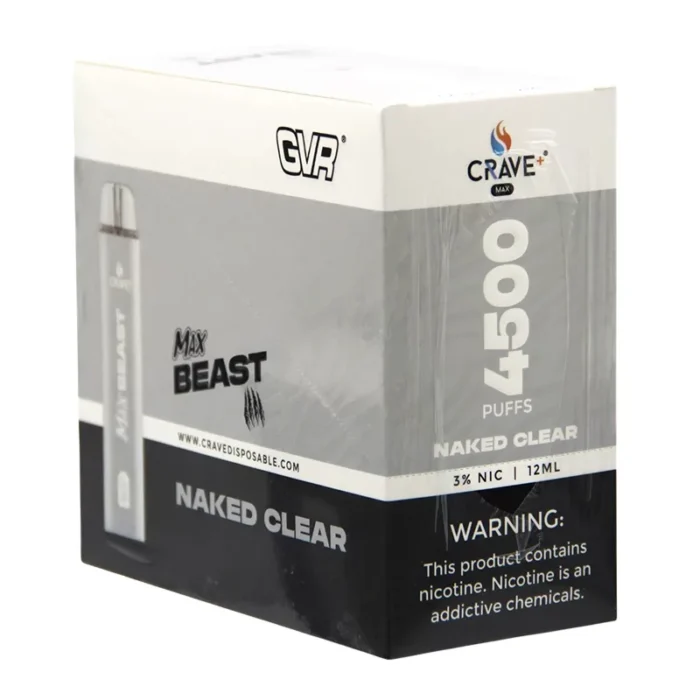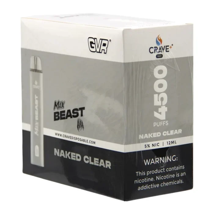 CRAVE MAX BEAST DISPOSABLE 4500 PUFFS NAKED CLEAR 5% - BOX OF 10