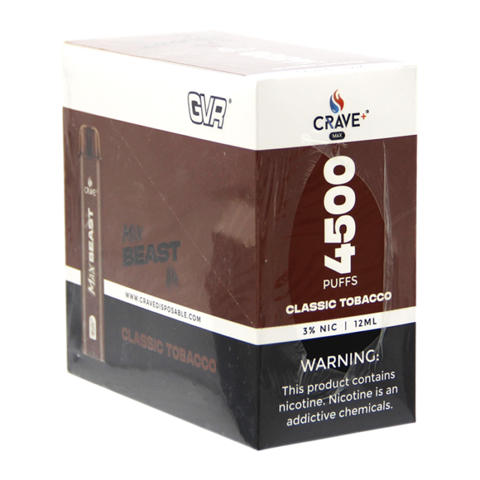 CRAVE MAX BEAST DISPOSABLE 4500 PUFFS CLASSIC TOBACCO 3% - BOX OF 10