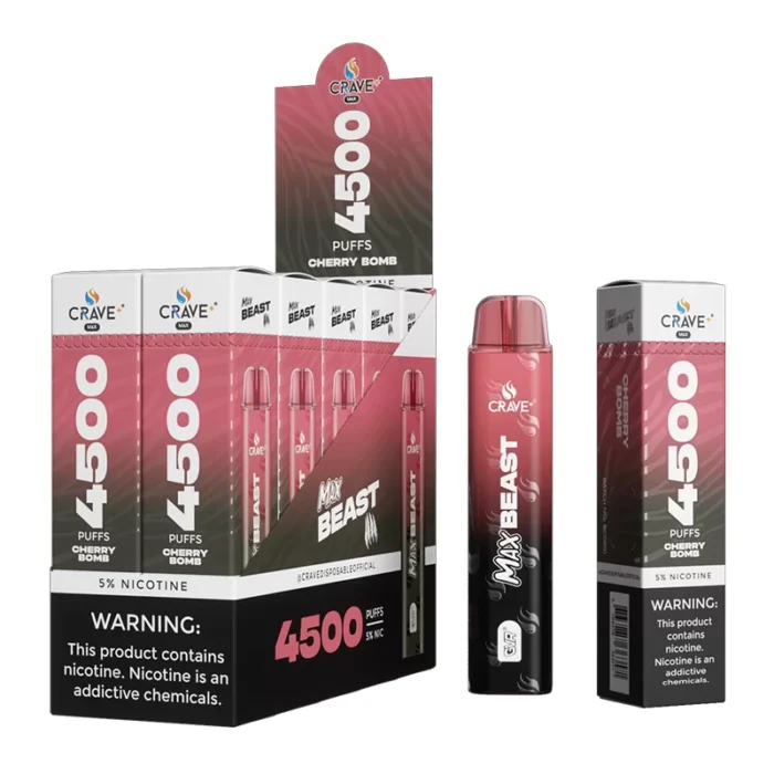 CRAVE MAX BEAST DISPOSABLE 4500 PUFFS CHERRY BOMB 5% - BOX OF 10