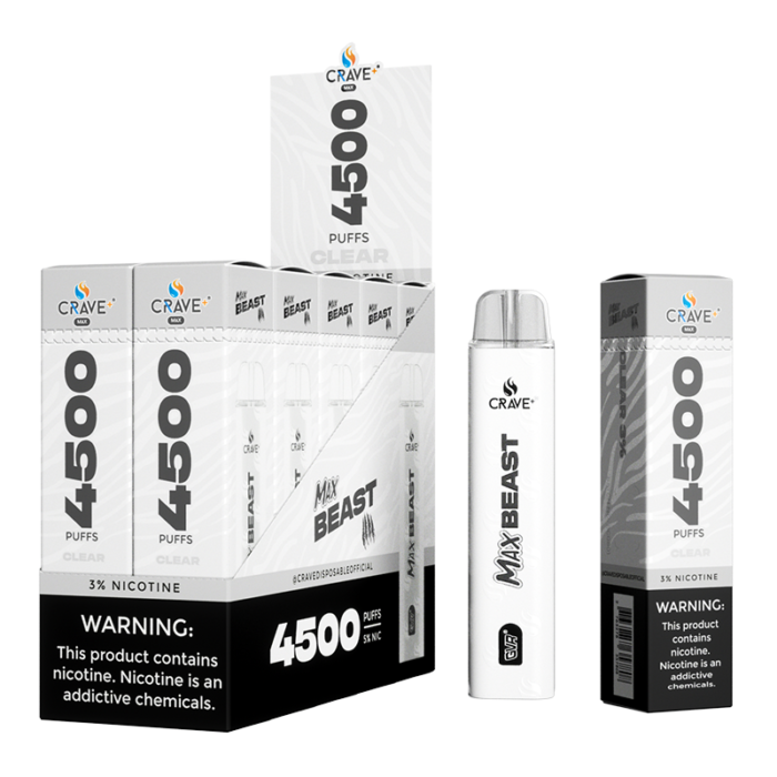 CRAVE MAX BEAST DISPOSABLE 4500 PUFFS CLASSIC CLEAR 3% - BOX OF 10