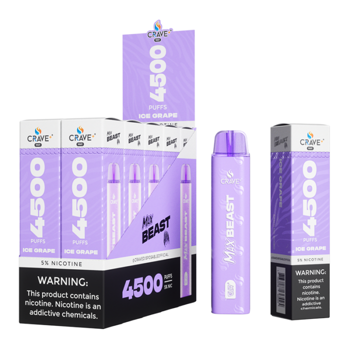 CRAVE MAX BEAST DISPOSABLE 4500 PUFFS ICE GRAPE 5% - BOX OF 10