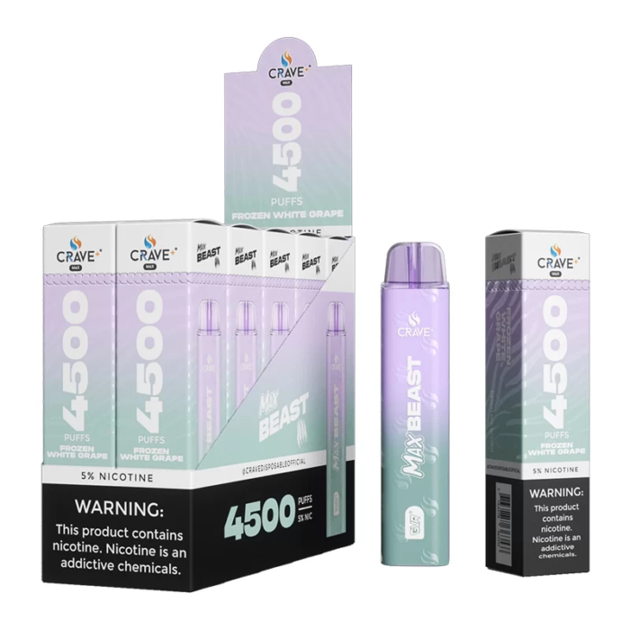 CRAVE MAX BEAST DISPOSABLE 4500 PUFFS FROZEN WHITE GRAPE 5% - BOX OF 10