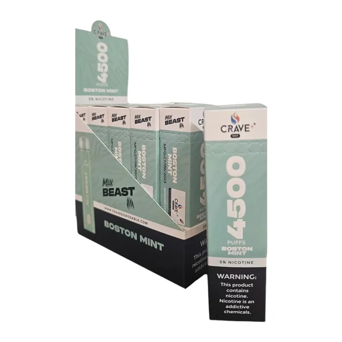 CRAVE MAX BEAST DISPOSABLE 4500 PUFFS BOSTON MINT 5% - BOX OF 10