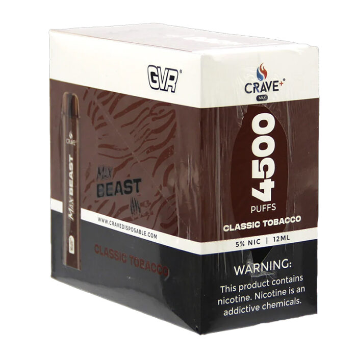 CRAVE MAX BEAST DISPOSABLE 4500 PUFFS CLASSIC TOBACCO 5% - BOX OF 10
