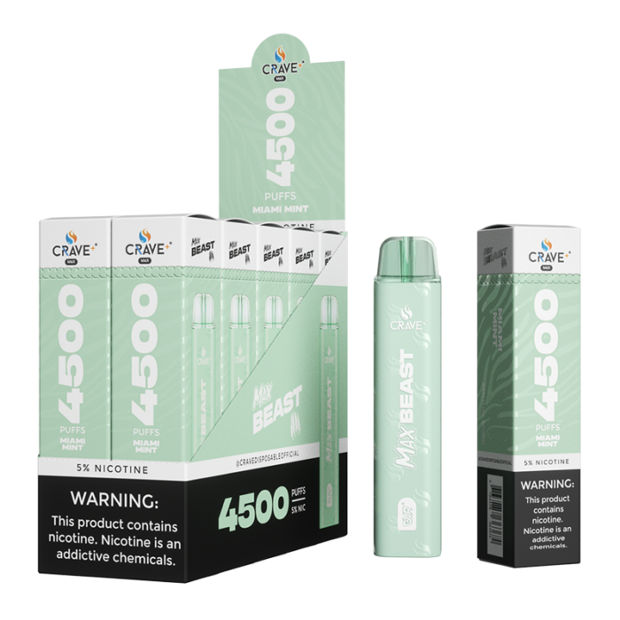 CRAVE MAX BEAST DISPOSABLE 4500 PUFFS MIAMI MINT 5% - BOX OF 10
