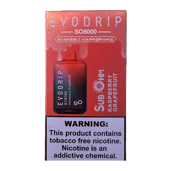EVO DRIP SO8000 DISPOSABLE RASPBERRY GRAPEFRUIT 3% - PACK OF 5
