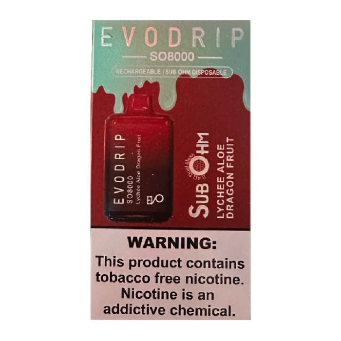 EVO DRIP SO8000 DISPOSABLE LYCHEE ALOE DRAGON FRUIT 3% - PACK OF 5