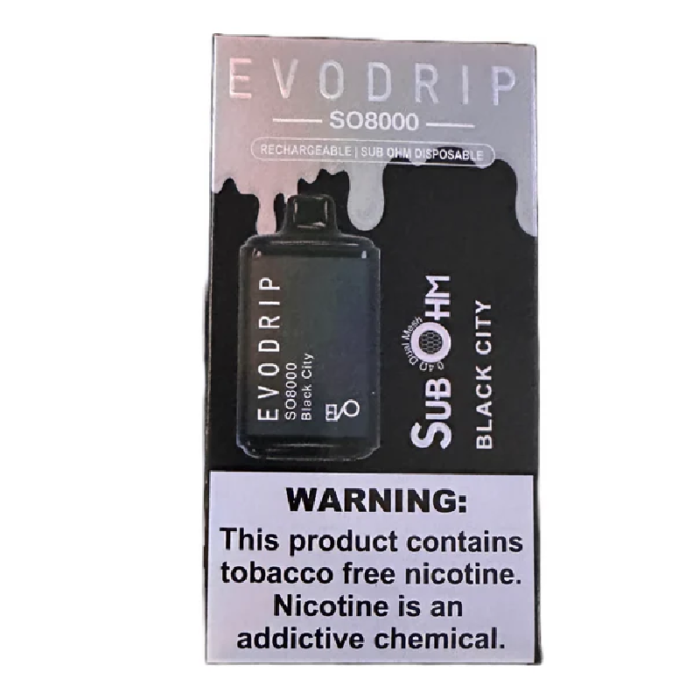 EVO DRIP SO8000 DISPOSABLE BLACK CITY 3% - PACK OF 5