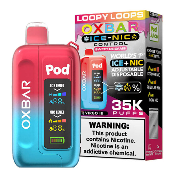 POD JUICE OX BAR 35K DISPOSABLE ICE - NIC ADJUSTABLE LOOPY LOOPS - PACK OF 5
