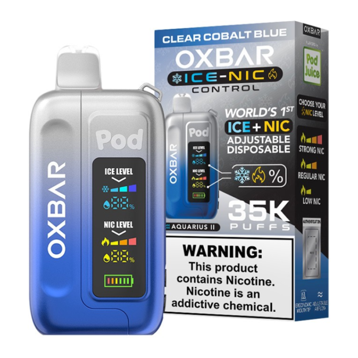 POD JUICE OX BAR 35K DISPOSABLE ICE - NIC ADJUSTABLE CLEAR COBALT BLUE - PACK OF 5