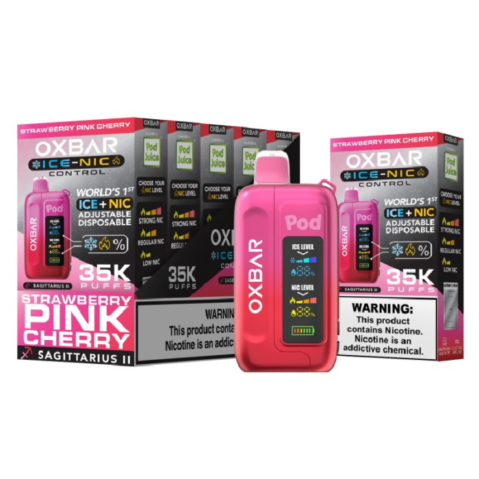 POD JUICE OX BAR 35K DISPOSABLE ICE - NIC ADJUSTABLE STRAWBERRY PINK CHERRY - PACK OF 5