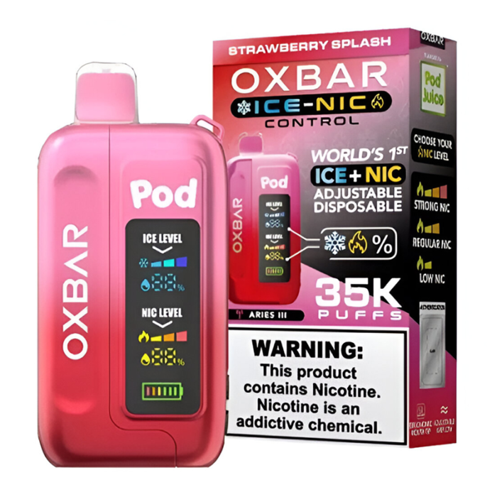 POD JUICE OX BAR 35K DISPOSABLE ICE - NIC ADJUSTABLE STRAWBERRY SPLASH - PACK OF 5