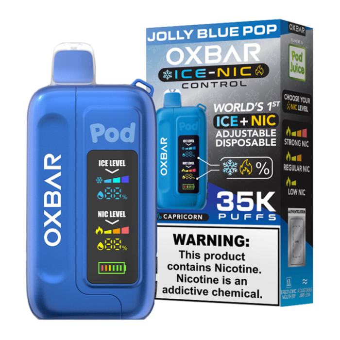 POD JUICE OX BAR 35K DISPOSABLE ICE - NIC ADJUSTABLE JOLLY BLUE POP - PACK OF 5