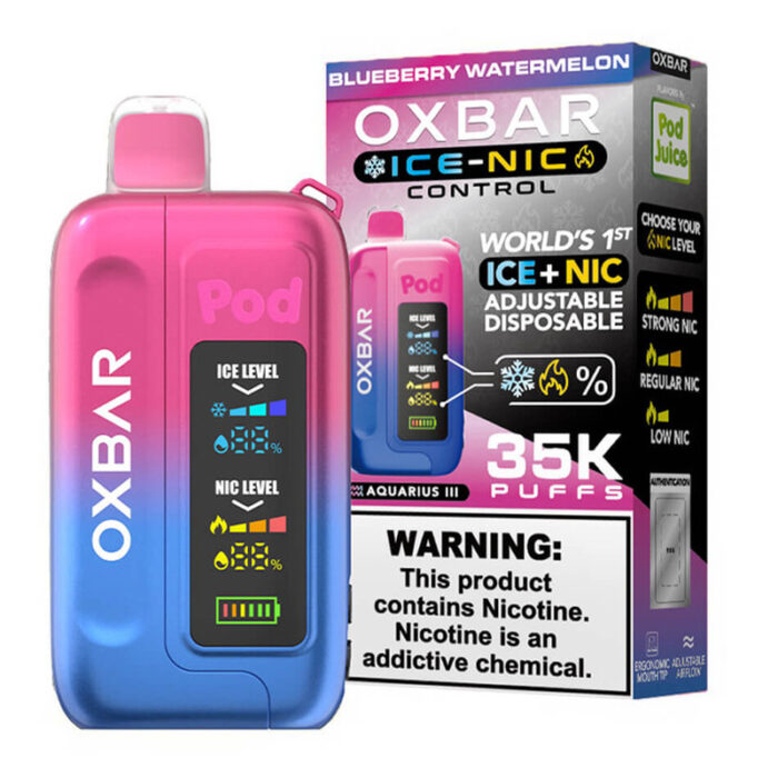 POD JUICE OX BAR 35K DISPOSABLE ICE - NIC ADJUSTABLE BLUEBERRY WATERMELON - PACK OF 5