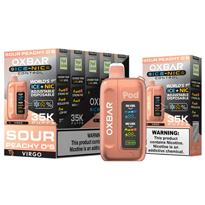 POD JUICE OX BAR 35K DISPOSABLE ICE - NIC ADJUSTABLE SOUR PEACHY O'S - PACK OF 5