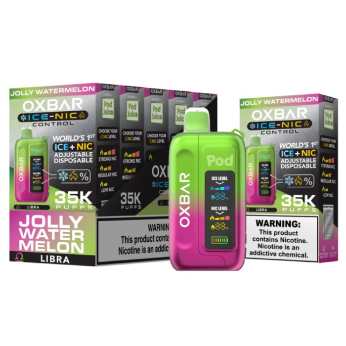 POD JUICE OX BAR 35K DISPOSABLE ICE - NIC ADJUSTABLE JOLLY WATERMELON - PACK OF 5