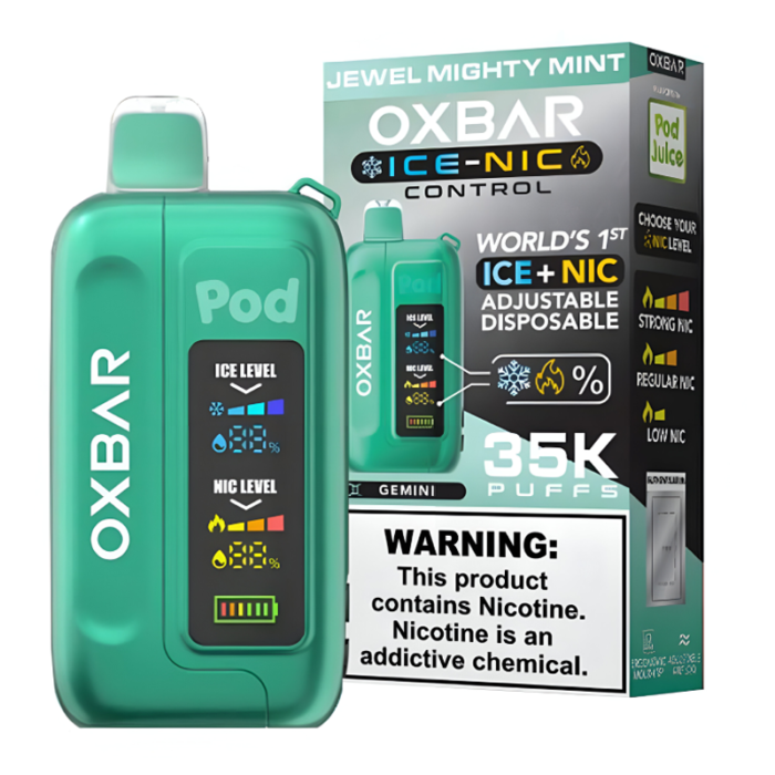 POD JUICE OX BAR 35K DISPOSABLE ICE - NIC ADJUSTABLE JEWEL MIGHTY MINT - PACK OF 5