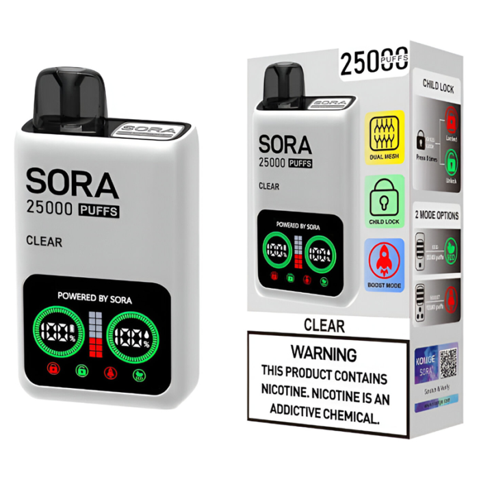 SORA DISPOSABLE 25000PUFFS CLEAR 5% - PACK OF 5
