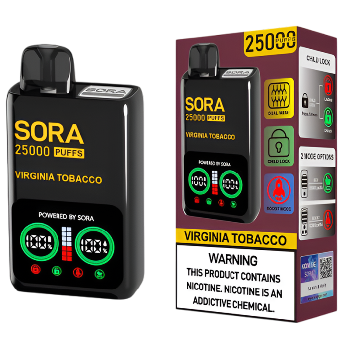 SORA DISPOSABLE 25000PUFFS VIRGINIA TOBACCO 5% - PACK OF 5