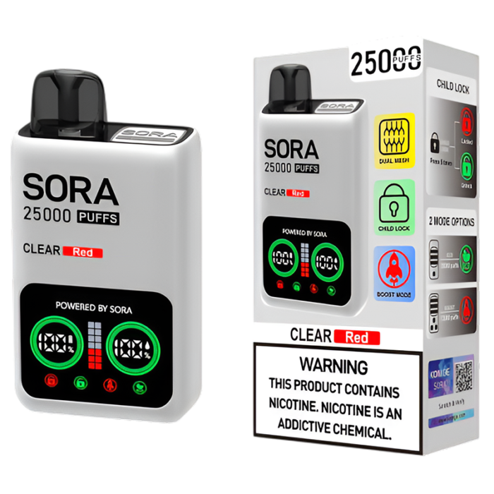 SORA DISPOSABLE 25000PUFFS CLEAR RED 5% - PACK OF 5